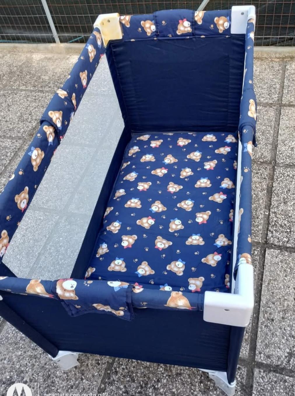Lettino box, funzionante. Usato per un solo bebè. Ottimo come angolo di sicurezza quando è sveglio, valido trasportino per piccole vacanze
