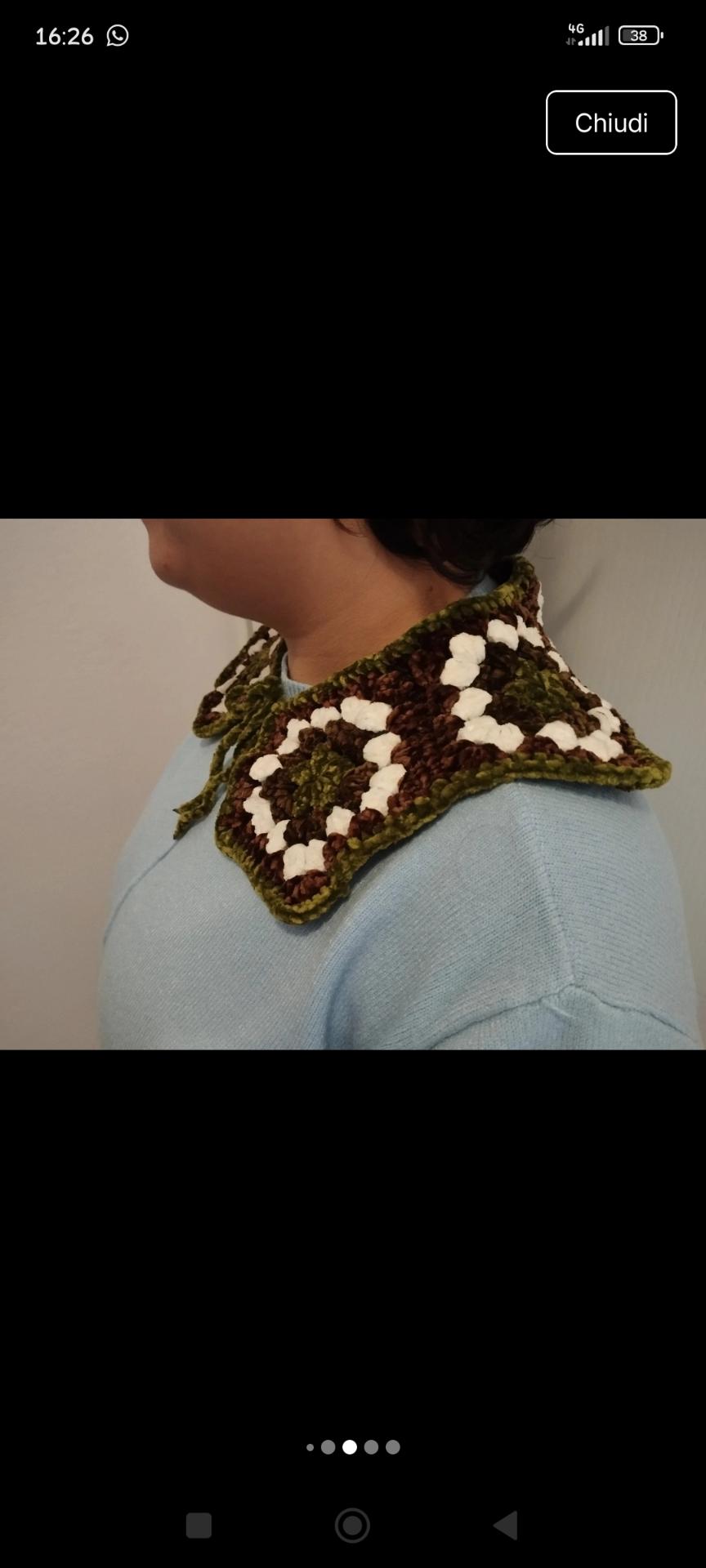 Colletto Peter Pan fatto a mano all'uncinetto in ciniglia caldo e morbido Nuovo mai indossato Taglia unica