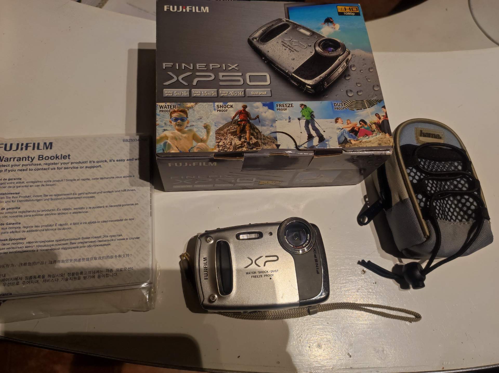 Macchina fotografica Fujifilm modello XP 50 subacquea, resistente alla polvere, agli urti e alla sabbia, funzionante e in buone condizioni. Completa di scatola originale, libretto, caricabatterie e 2 batterie. Scambio solo con console gaming ( PlayStation, Nintendo) e videogiochi.